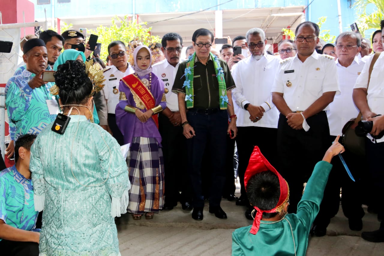 Menteri Hukum dan Hak Asasi Manusia (Menkumham) RI, Yassona H Laoly didampingi Wali Kota Makassar Moh Ramdhan ‘Danny’ Pomanto menyapa perwakilan pelajar SD dan SMP se-Kota Makassar.