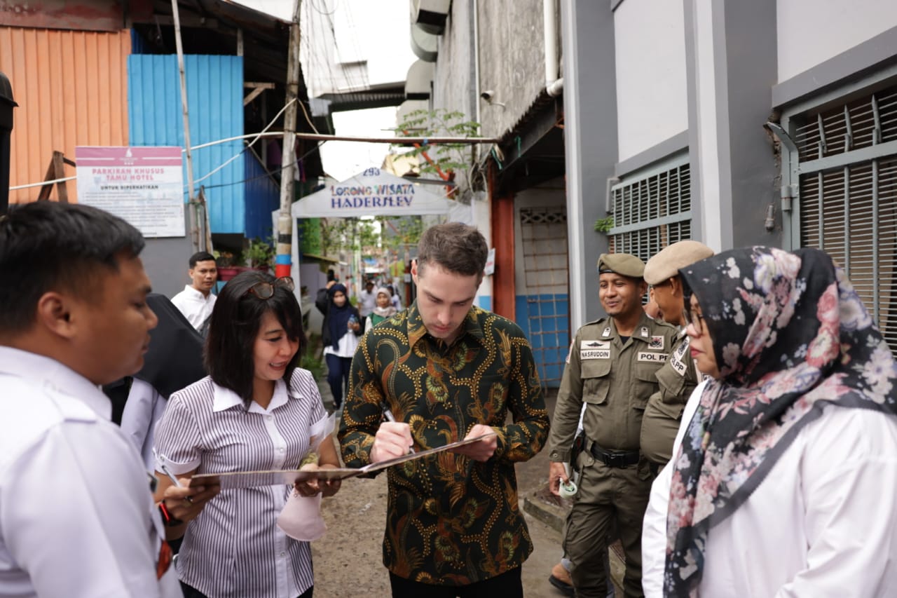 Clint mengunjungi salah satu lorong, yakni Lorong Wisata Haderslev, Jalan Somba Opu, Kelurahan Maloku, Kecamatan Ujung Pandang.