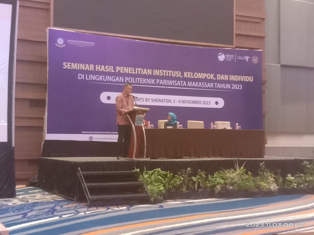 BISNISSULAWESI.COM, MAKASSAR – Politeknik Pariwisata (Poltekpar) Makassar, melaksanakan seminar penelitian hasil karya dosen di Four Point Sheraton Hotel, Makassar, Jumat (03/11/2023). Menghadirkan Prof. Haerani dari Unhas dan Prof. Haydar dari UNM dan 12 orang tim pembahas hasil penelitian para dosen Poltekpar.