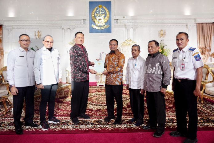 SHP diterima Gubernur Sulsel Andi Sudirman Sulaiman dan diserahkan Kepala Kantor ATR/BPN Luwu Timur, Muhallis Menca di Rujab Gubernur Sulsel, Rabu 8 Februari 2022.