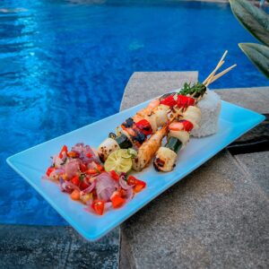 “Seafood Satay” yang terdiri dari ikan, stik kepiting, dan udang yang dibandrol Rp70.000/nett per orang. POTO : ISTIMEWA
