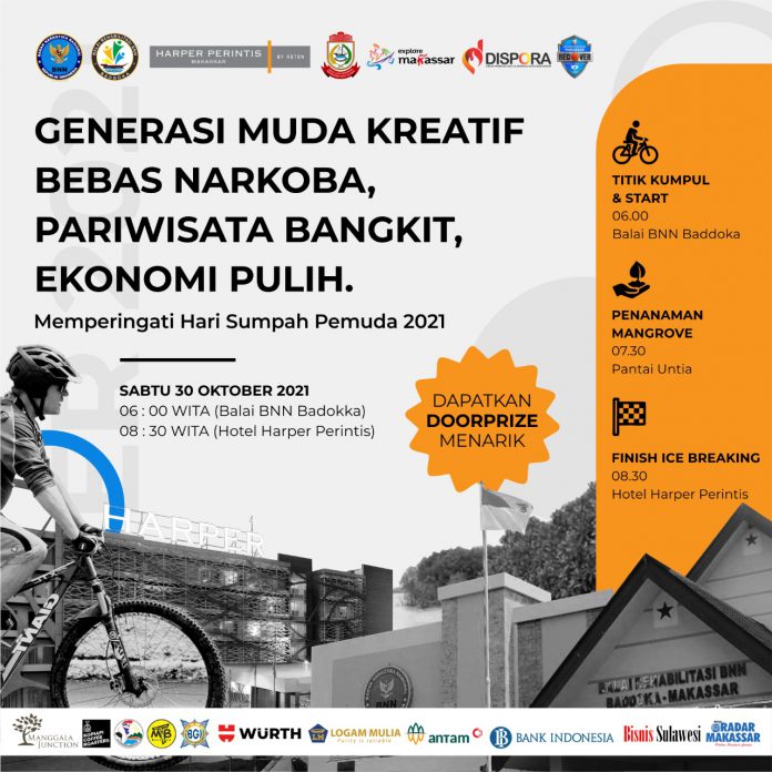 BISNIS SULAWESI.COM, MAKASSAR – Untuk mewujudkan suatu tujuan besar, memerlukan kolaborasi bersama banyak pihak. Seperti yang dilakukan BNN Baddoka, yang berkolaborasi bersama Pemkot Makassar, Dinas Pemuda dan Olahraga Kota Makassar, Dinas Pariwisata Kota Makassar, serta Harper Perintis Makassar, dalam penyelenggaraan sebuah event, 30 Oktober 2021.