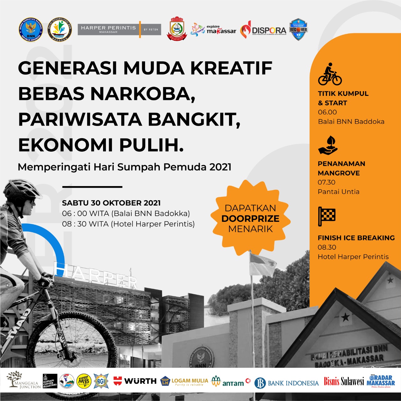 Memperingati Hari Sumpah Pemuda tahun ini, kolaborasi bersama tersebut diwujudkan dalam penyelenggaraan event, dengan mengkombinasikan antara olahraga dan kelestarian lingkungan , yaitu bersepeda dengan rangkaian penanaman ratusan bibit pohon, di salah satu destinasi pariwisata area Biringkanayya, yaitu Pantai Untia, Kota Makassar.