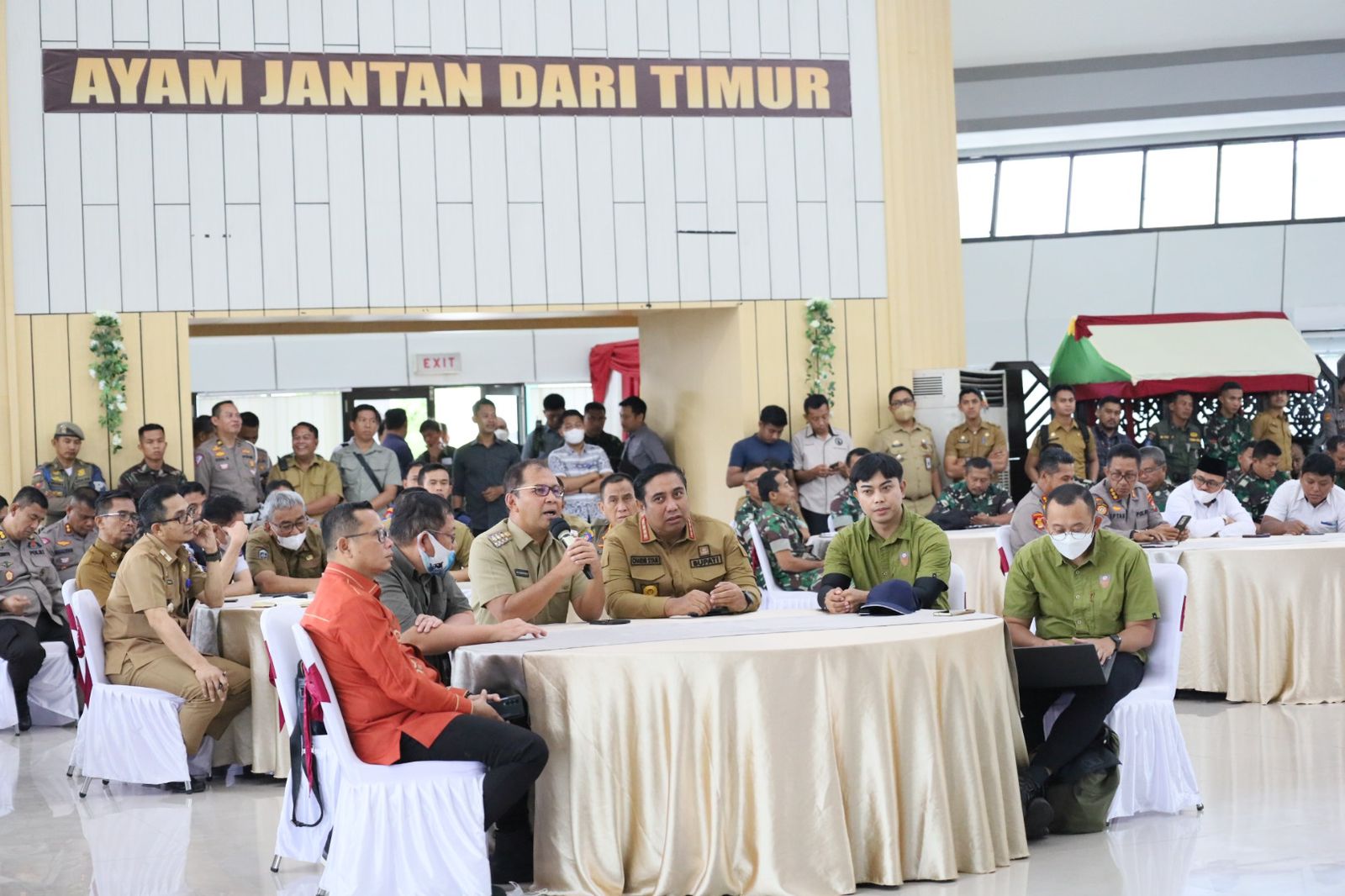 Dipimpin Pangdam XIV Hasanuddin Mayjen TNI Totok Imam Santoso, Rakorwil dan Rakor PAM VVIP Kunker Presiden RI bersama Ibu Iriana Joko Widodo berlangsung di Manunggal Mini Kodam XIV Hasanuddin, Jalan Urip Sumohardjo, Selasa (28/03/2023).