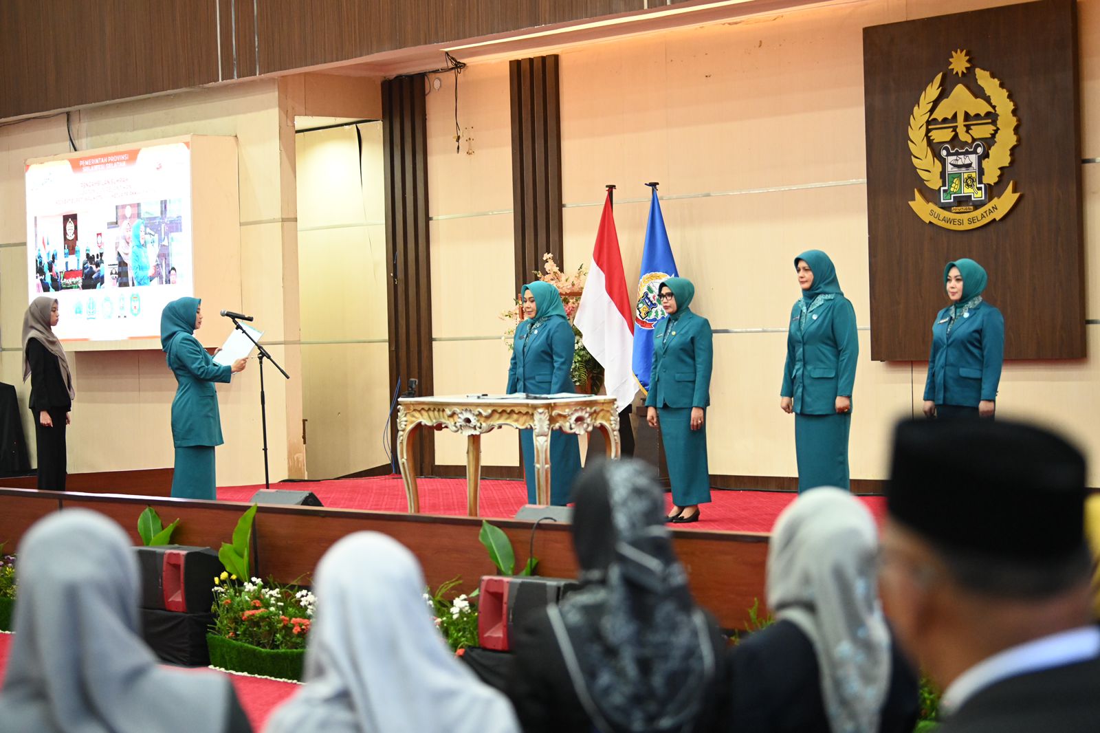 BISNISSULAWESI.COM, MAKASSAR – Penjabat (Pj) Ketua Tim Penggerak Pemberdayaan dan Kesejahteraan Keluarga (TP PKK) Provinsi Sulawesi Selatan, Sofha Marwah Bahtiar melantik 4 Penjabat Ketua TP PKK kabupaten/kota di Ruang Pola, Kantor Gubernur Sulsel, Kota Makassar, Selasa (26/09/2023).