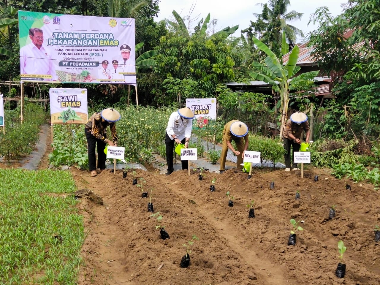 Pada kesempatan tersebut, Menteri Pertanian Syahrul Yasin Limpo, menandatangani prasasti, sebagai pertanda peresmian program Pekarangan Emas yang bertema “Tanam Perdana Pekarangan Emas”.
