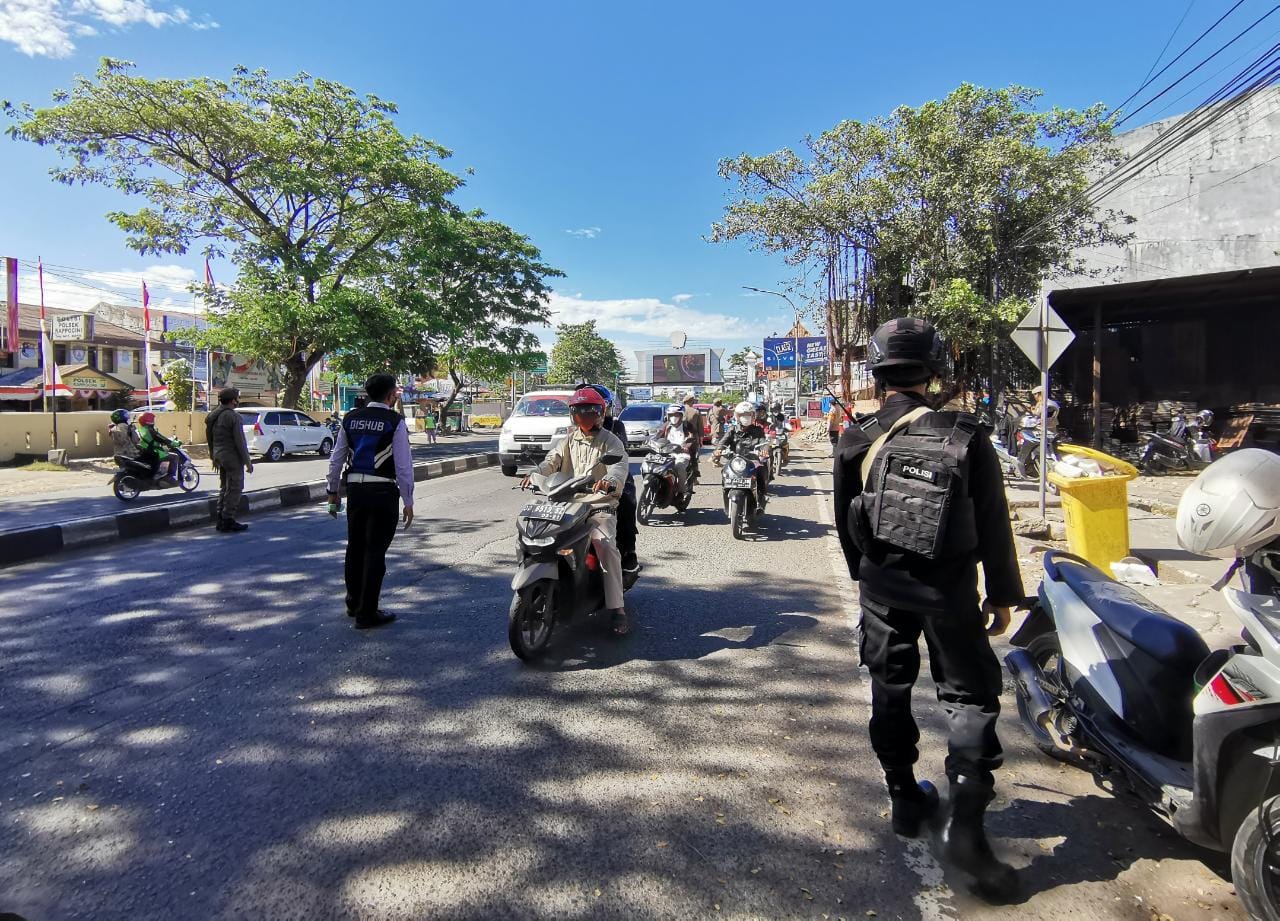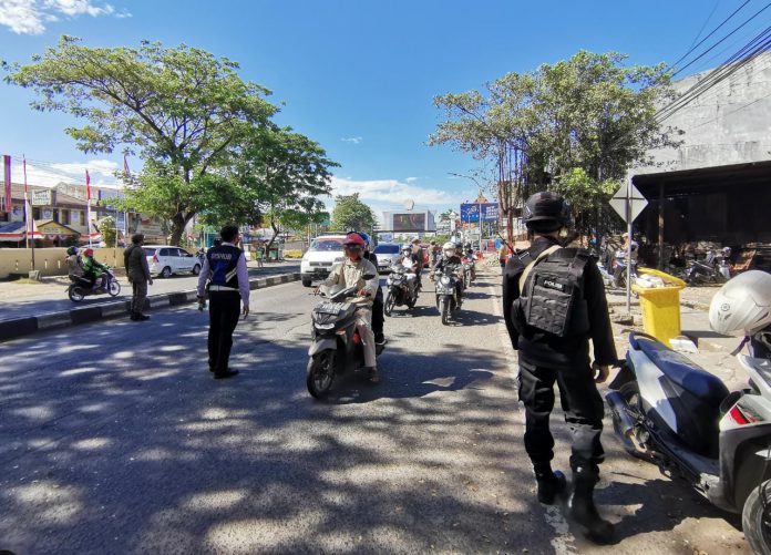 BISNISSULAWESI.COM, MAKASSAR – Sejumlah petugas menghentikan warga yang tidak menggunakan masker saat mengendarai kendaraannya di jalan Sultan Alauddin Makassar, Kamis (12/8/2021). Warga yang kedapatan tidak memakai masker ada di langsung di lakukan Rapid Antigen dan didata identitas dirinya.