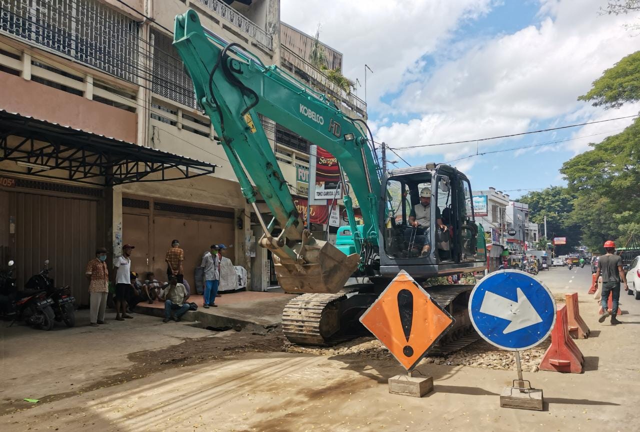 BISNISSULAWESI.COM, MAKASSAR – Sejumlah ruas jalan protokol di Kota makassar, mengalami kerusakan. Berkaitan dengan itu, pmerintah melakukan perbaikan, seperti terlihat aktifitas perbaikan di jalan Veteran Makassar, Senin (20/07/2020). Masyudi Firmansyah
