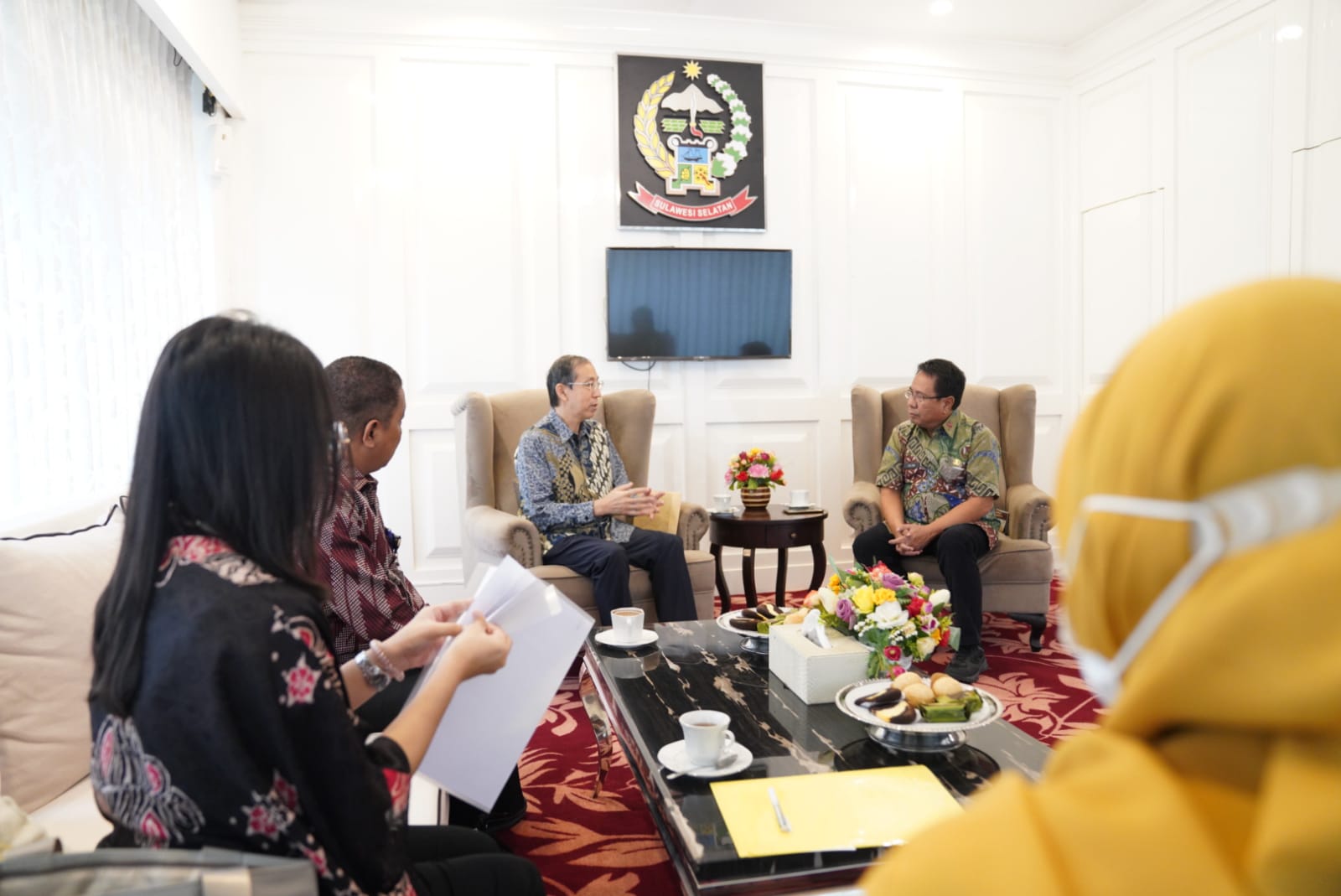 kkkkk4llBISNISSULAWESI.COM, MAKASSAR – Penjabat Sekertaris Daerah (Sekda) Provinsi Sulawesi Selatan (Sulsel), Andi Aslam Patonangi, menerima kedatangan Kepala Kantor Konsuler Jepang di Makassar, Yasue Katsunobu, di Baruga Lounge, Kantor Gubernur Sulsel, Kamis, 9 Februari 2023.