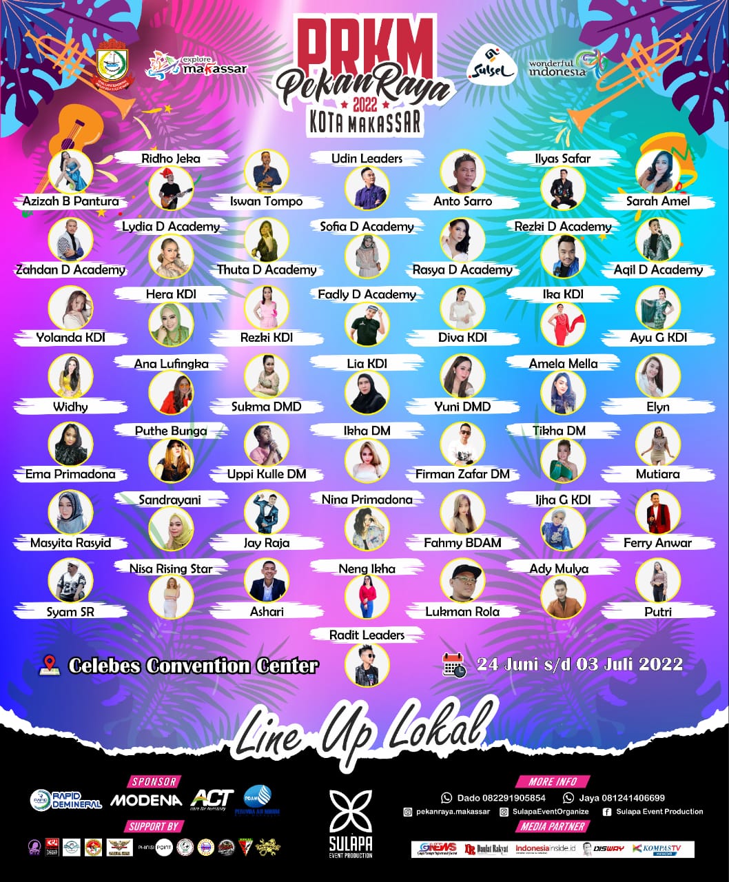 Selain itu, tambah Dado, sapaan akrabnya, selama 10 hari penyelenggaraan event, juga digelar berbagai lomba dan music perform berbagai genre. Mulai dangdut hingga lagu-lagu daerah khas bugis Makassar, akan hadir menghibur masyarakat Makassar yang haus akan hiburan.