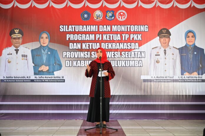BISNISSULAWESI.COM, BULUKUMBA – Setelah bersilaturahmi dengan Tim Penggerak (TP) PKK Kabupaten Bantaeng, Pj Ketua TP PKK Sulsel, Sofha Marwah Bahtiar, melanjutkan kunjungan kerjanya ke Kabupaten Bulukumba, Jumat, 22 September 2023. Di daerah yang terkenal dengan Phinisi-nya ini, Sofha bersilaturahmi sekaligus memonitoring program PKK dan Dekranasda Bulukumba.