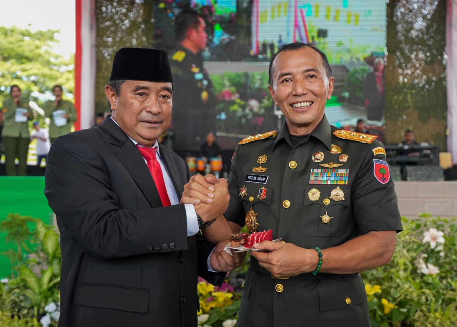 Bersama KASAD, Pj Gubernur juga menyerahan piagam penghargaan hasil lomba Karya Bakti Tingkat TNI AD kepada Kodim 1408/Makassar.