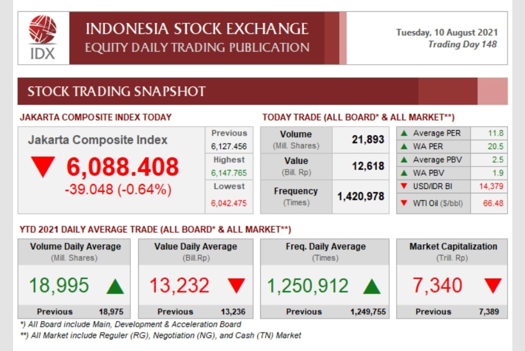 BISNISSULAWESI.COM, MAKASSAR – Tertahan di zona merah, IHSG ditutup melemah ke level 6,088.408 (-0.64%) pada perdagangan, Selasa (10/8). Selain IHSG, KOSPI  juga berada di zona merah dengan pelemahan sebesar 0.53%.