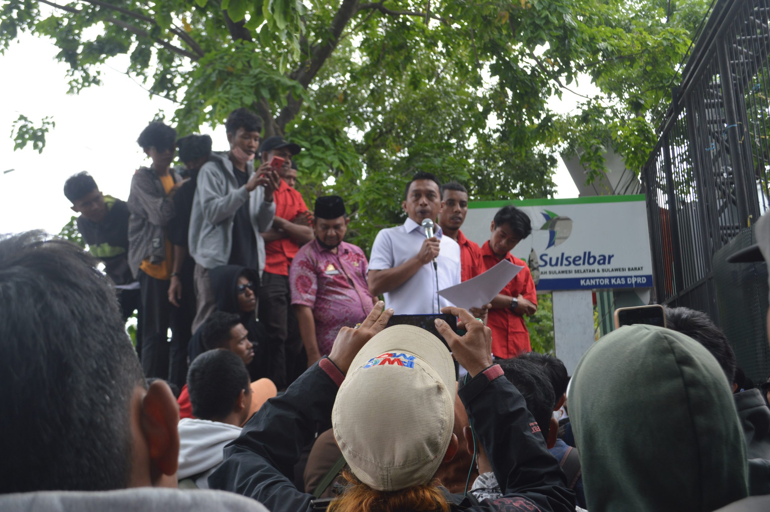 GARAKAN Mahasiswa Anti Korupsi (GERMAK) melakukan aksi ujuk rasa di depan kantor Dewan Perwakilan Rakyat Daerah (DPRD) Provinsi Sulawesi Selatan Kamis (15/9). Aksi ini dilatarbelakangi oleh tindakan yang tidak bermoral berupa intimidasi dan arogansi yang ditunjukkan oleh Perseroda Sulawesi Selatan terhadap warga Latanete Sungai Saddang.