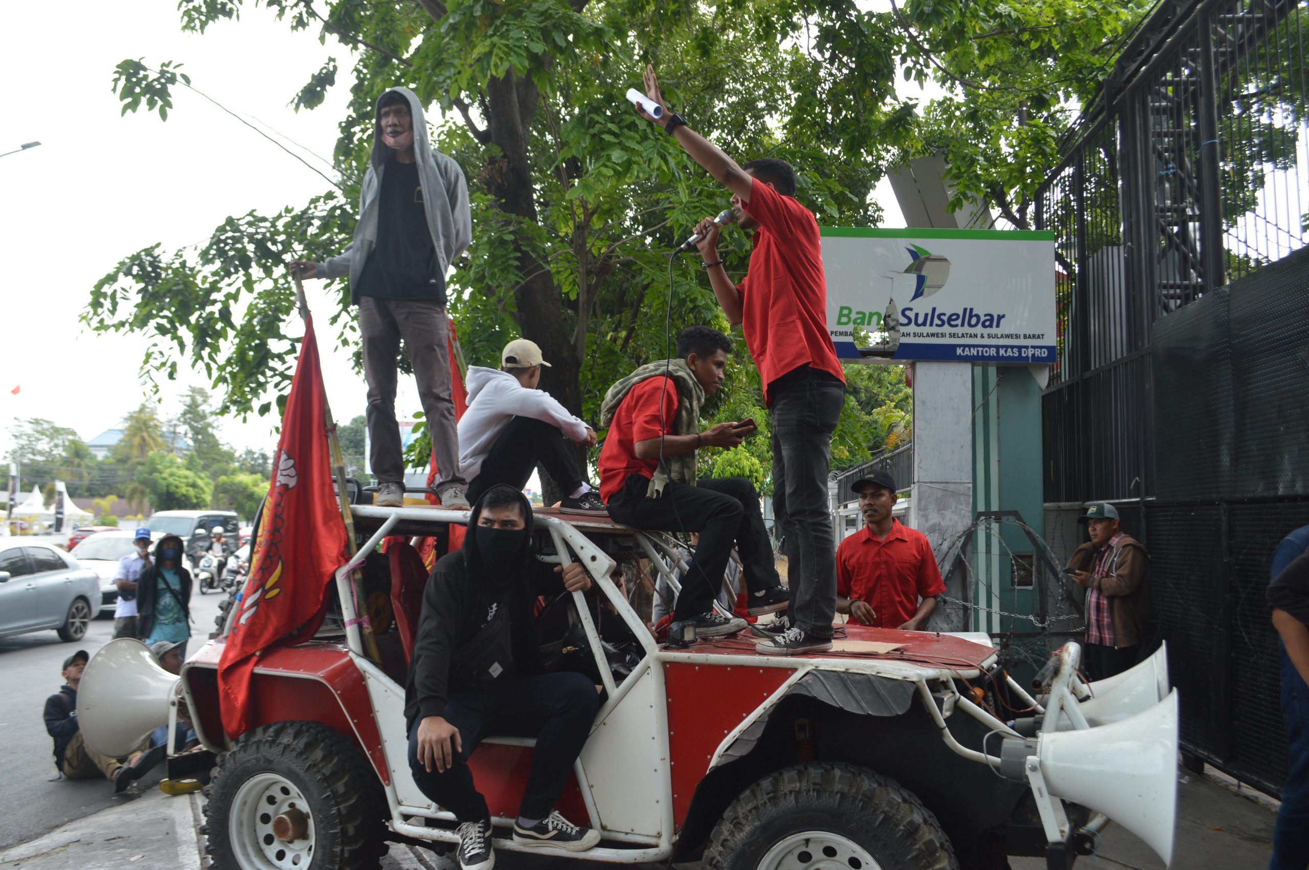 GARAKAN Mahasiswa Anti Korupsi (GERMAK) melakukan aksi ujuk rasa di depan kantor Dewan Perwakilan Rakyat Daerah (DPRD) Provinsi Sulawesi Selatan Kamis (15/9). Aksi ini dilatarbelakangi oleh tindakan yang tidak bermoral berupa intimidasi dan arogansi yang ditunjukkan oleh Perseroda Sulawesi Selatan terhadap warga Latanete Sungai Saddang.