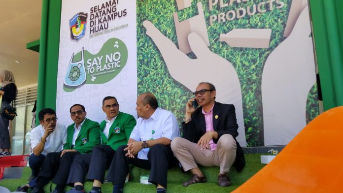 “Yang kedua dengan say no to plastic. Perguruan tinggi pertama di Indonesia yang mulai mendidik mabanya untuk kampanyekan say no to plastic,” ungkapnya.