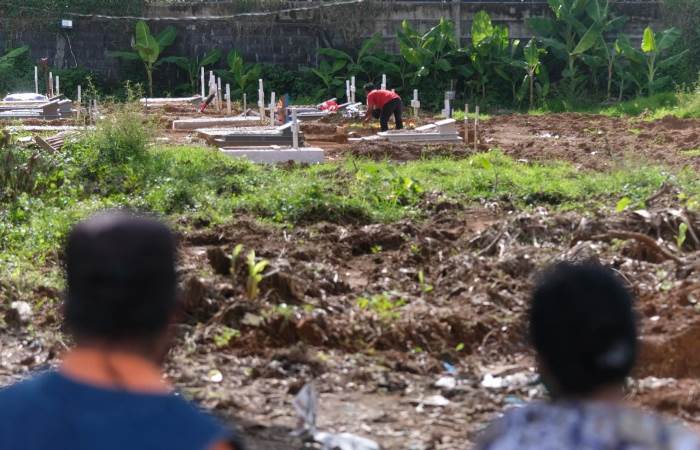 BISNISSULAWESI.COM, MAKASSAR – Sejumlah keluarga peziarah korban pasien Covid 19 berdiri di depan pemakaman khusus Covid 19 Mancada, Kabupaten Gowa, Minggu (21/3). Meskipun Pemerintah Provinsi Sulawesi Selatan sudah mengeluarkan surat edaran tentang “Pembukaan Ziarah Tempat Pemakaman Khusus Covid 19” sebagian keluarga korban pasien Covid 19 tersebut dilarang masuk untuk berziarah atau tidak diberikan izin.